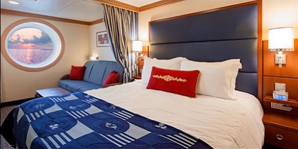 Zariadenie kajút: dvojlôžková queen posteľ (matrace Posturepedic Premium Plush, bielizeň z egyptskej bavlny), kvalitné uteráky, skriňa, kúpeľňa so sprchou, vaňou a WC, sušič na vlasy, kozmetika H20+ Spa (šampón, kondicionér a telové maslo), obývacia časť so sofa a stolíkom, oddeliteľná závesom, skriňa, 22 palcová plochá Tv, bezpečnostná schránka, telefón s priamou linkou, iPod stanica, veľké zrkadlo, minibar, regulovateľná klimatizácia.
