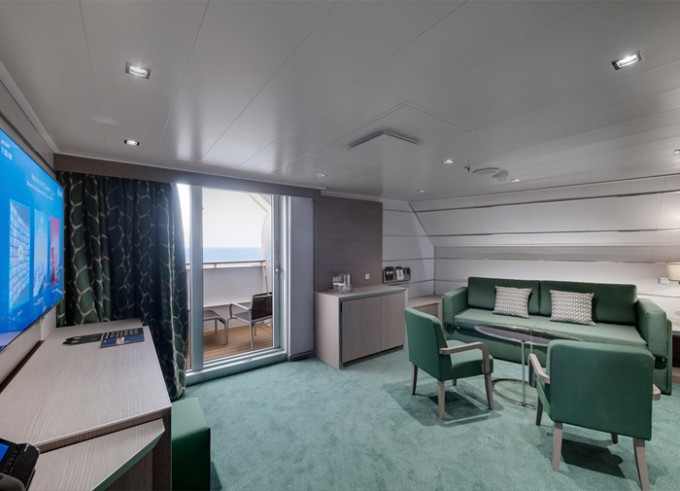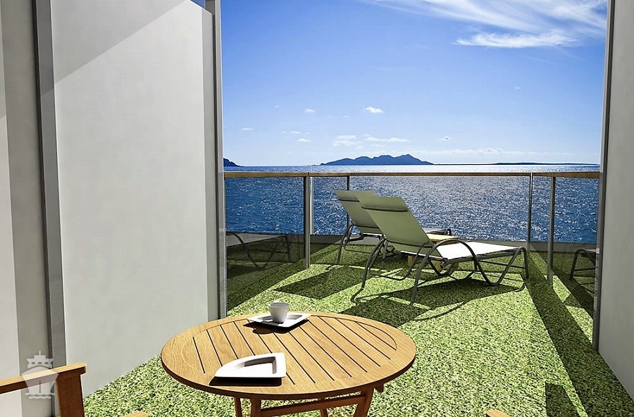 | SLT - Premium Suite Aurea s veľkou terasou 28 m² + balkón 38 m². 9. paluba. Cenový model Aurea. | 1 893 € 631 € za osobu | ||