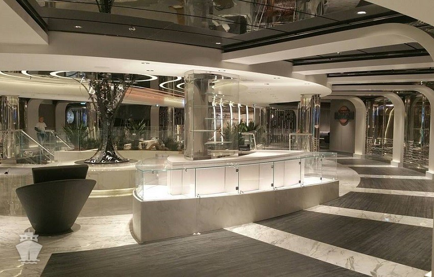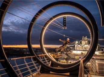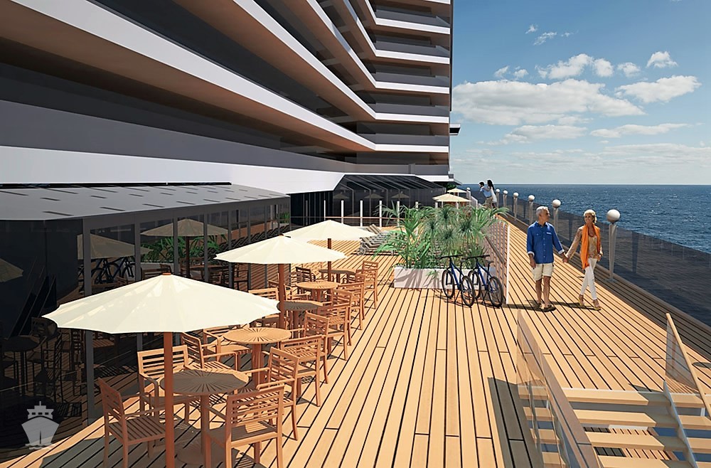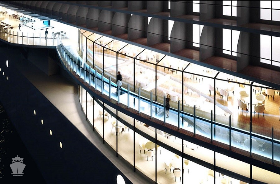 "360° Waterfront boardwalk" – promenáda okolo celej lode, ktorej súčasťou je prechádzka cez priehľadnú podlahu pre ešte väčší zážitok z plavby.