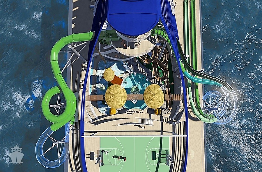 - Športové aktivity na otvorených palubách (jogging, basketbal, futbal, tenis), bazény a ležadlá