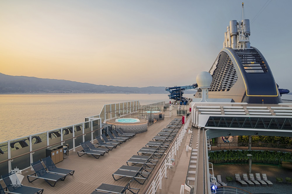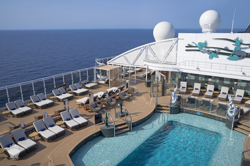 The Infinity Aft Pool na zadku 8. paluby - nekonečný bazén dosahujúci až na koniec zadnej paluby, so sklenenou stenou ponúkajúce neprerušovaný výhľad na oceán. Je jedným z najväčších plávajúcich nekonečných bazénov a ponúka rôzne hĺbky a lehátka zapustená do vody.