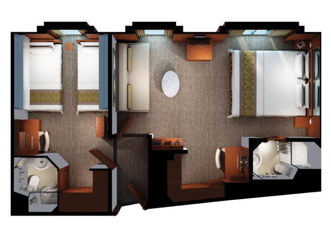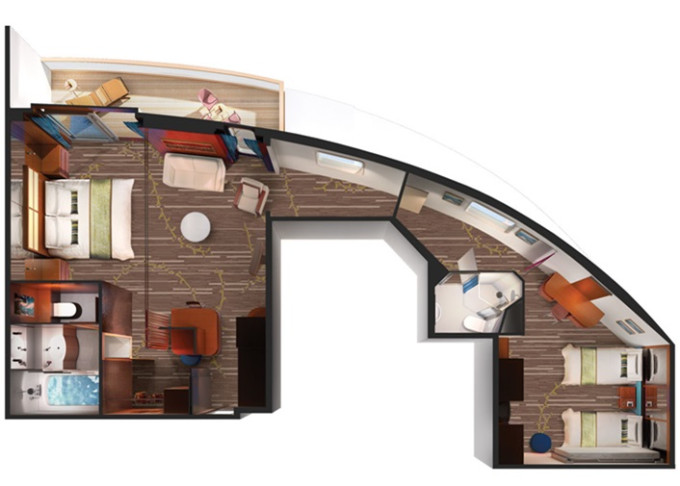 S4 - Deluxe Family Suite od 56 m² / balkón 9 m². 9. paluba - vpredu. Max 5 osôb. Výhody Suite. 17 698 € 8 849 € za osobu