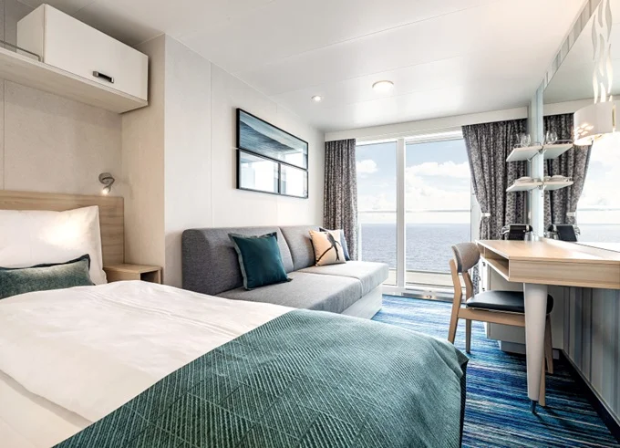 | SKAO - Schöne Aussicht Suite 39 m² + balkón 13-14 m² s ležadlami a hojdacou sieťou. 7-14. paluba. Max 4 osoby. Výhody Suite. | 16 377 € 5 459 € za osobu | ||