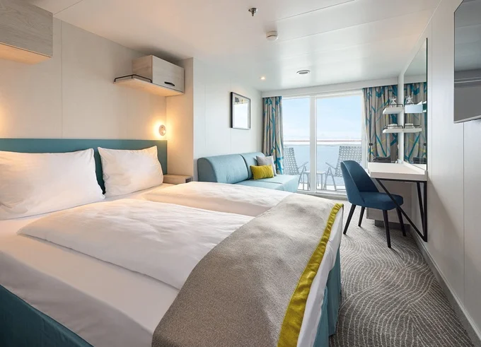 | BAHO - Kajuta s balkónom kat. H 17 m² + balkón s obmedzeným výhľadom 5 m². 6-9. paluba. Max 3 osoby. | 2 968 € 2 968 € za osobu |