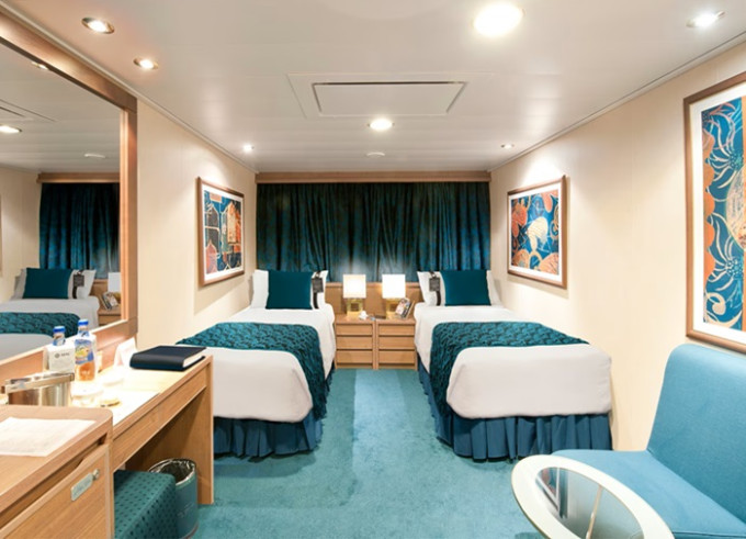- Ubytovanie v plne vybavenej kajute: vlastná kúpeľňa so sprchou a WC, interaktívna TV, telefón, safe, sušič na vlasy, regulovateľná klimatizácia, minibar (za poplatok). Pripojenie na internet cez Wi-fi (za poplatok)